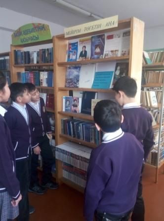 02.02.2017 ж. күні мектеп кітапханасында «Өзін-өзі тану: Махаббат пен шығармашылық педагогикасы» дәстүрлі онкүндігіне арналып «Мейірім төгетін ана» тақырыбына көр…