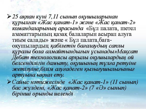 ҚР ШҒА «Жасыл ел» халықаралық форумы шеңберінде өткен аймақтық сырттай экологиялық байқауға № 18 ЖББОМ ның 10 сынып оқушысы Аринова Бақытжан қатысып, «Алғыс хат&raqu…
