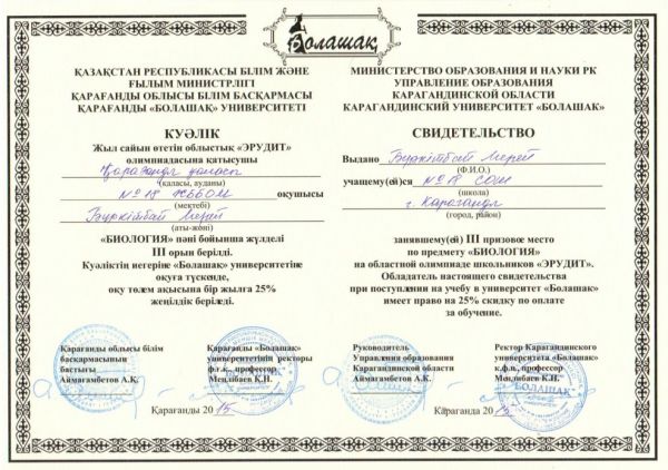 27. 02 .2015 ж.күні «Болашақ» университетінде өтілген «Эрудит- 2015» облыстық олимпиадасына №18 ОМ-тің биология пәні мұғалімі А.Т.Арбабаева ж…