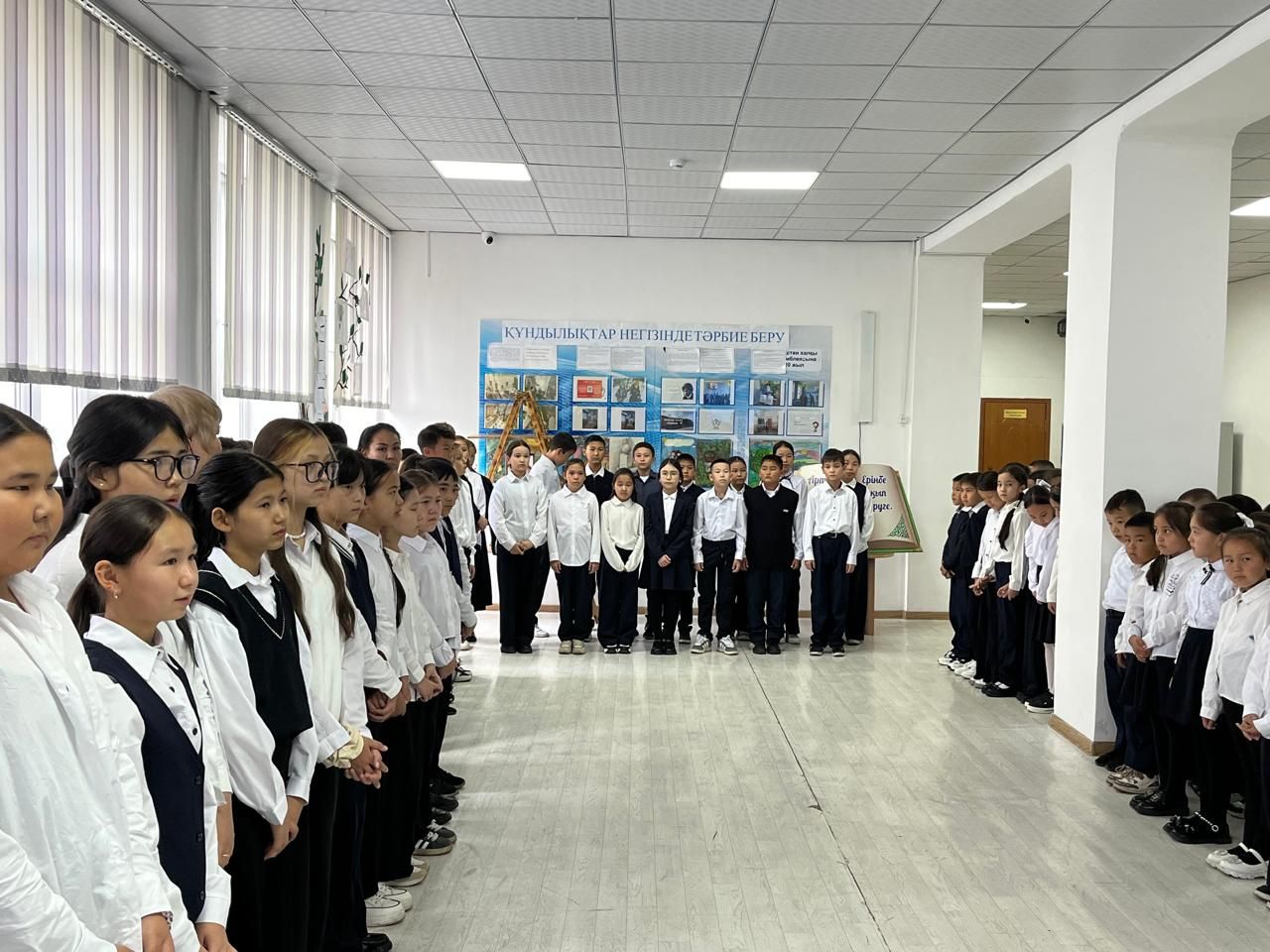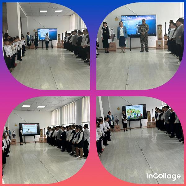 ✔️✔Мектепте 23.09.2024ж.күні екінші ауысым бойынша "Адал - азамат, адал-еңбек" тақырыбында дүйсенбілік салтанатты тізілім болды.❗️