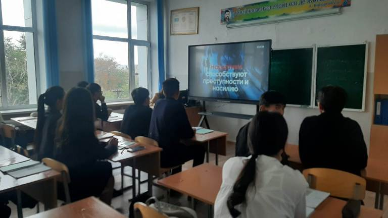 ✏️Мектепте 9-11 сынып оқушыларына "Наркотик способствуют приступности и насилию" тақырыбында бейнежазба көрсетілді.✅