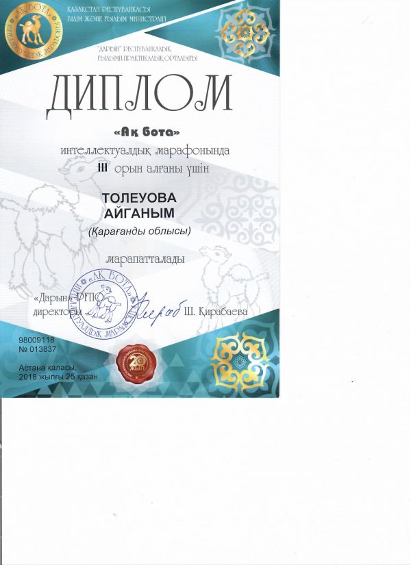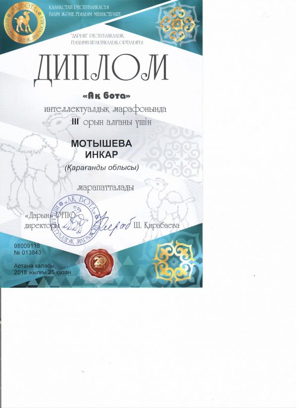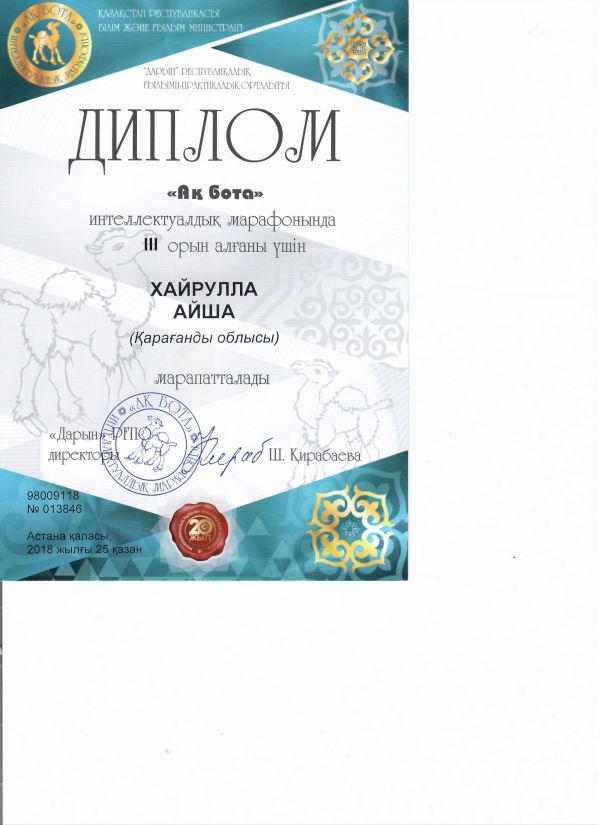 Учащиеся нашей школы приняли активное участие в Республиканском интеллектуальном марафоне «Ақ бота-2018» и заняли призовые места.Поздравляем!!!