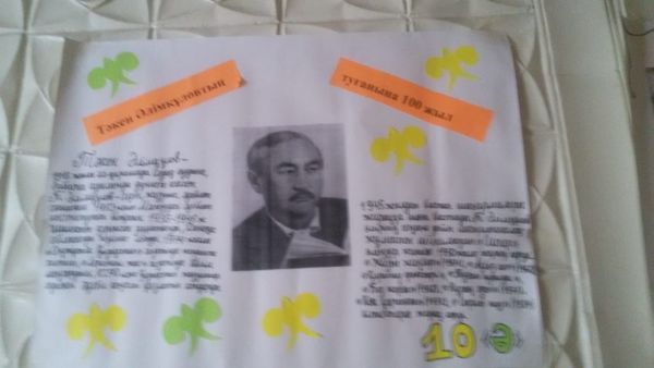"Ана тілім- бəрін сөйлер шежірем" тақырыбында 5- 10 сынып оқушыларының қатысуымен мерейтойлық күнтізбелік күндерге орай қабырға газеттерін шығарды.