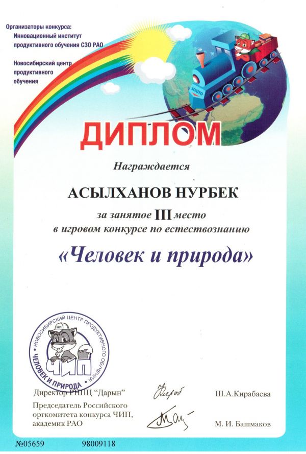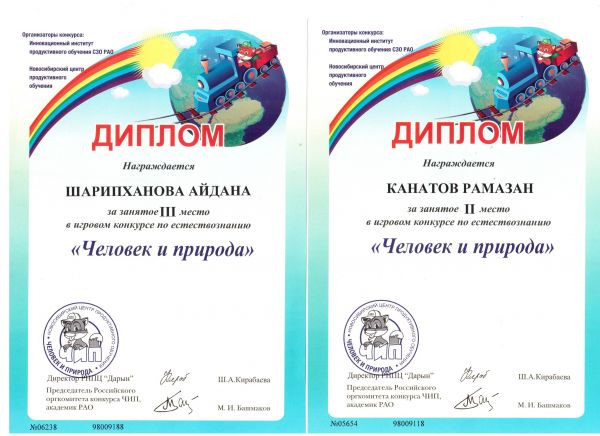 Учащиеся нашей школы приняли участие в Международном конкурсе «Человек и природа» и заняли призовые места: 3-класс Байтуганова Мадина 3-место ( Траева Б.Қ), 2-класс Мұрат Пер…