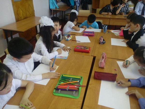 19.04.17 г. 10«А», 9«А», 6«А», 5«А» классах прошли открытые классные часы. В 10«А» классе – групповая работа «Біз бақытты бала…