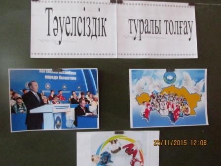 25 ноября 2015г. в 6 «ә» классе прошел классный час на тему «Тәуелсіздік туралы толғау».