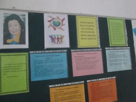 В фойе школы оформлен стенд, посвященный Дню Первого Президента Республики Казахстан о биографии президента Н.А. Назарбаева и его трудовой деятельности.