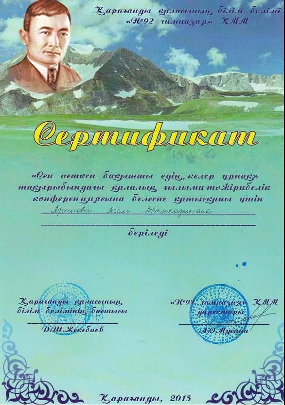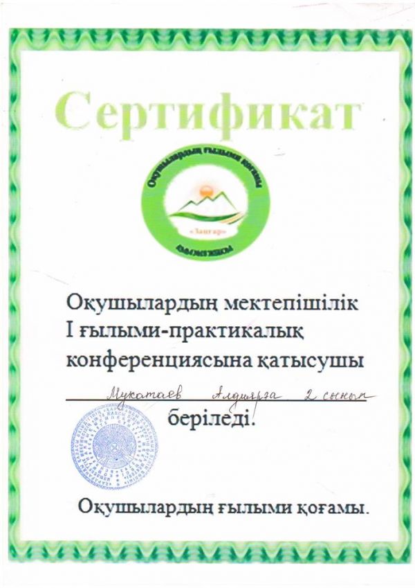 Қалалық «Сен неткен бақытты едің, келер ұрпақ» тақырыбында өтілген ғылыми –тәжірибелік конференцияға №18 ЖББОМ –ның қазақ тілі мен әдебиеті пәні мұғалімі А.А.А…