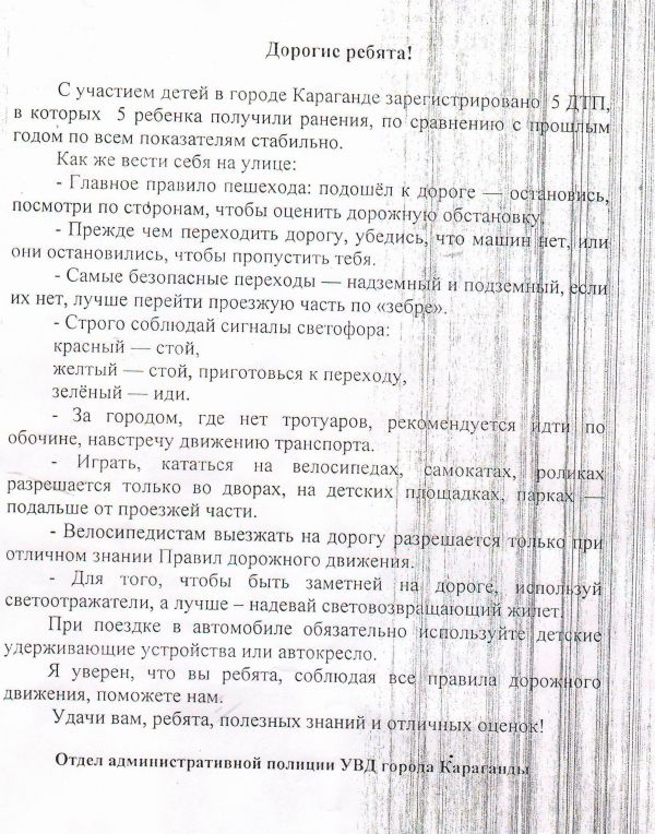 6 мая 2015 года Инспектора полиции было прочитали доклады на тему "Осторожно светофор". Лекцию слушали учащиеся 2-7 классов ,