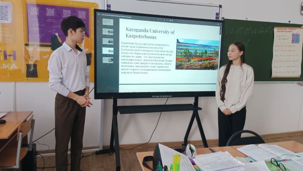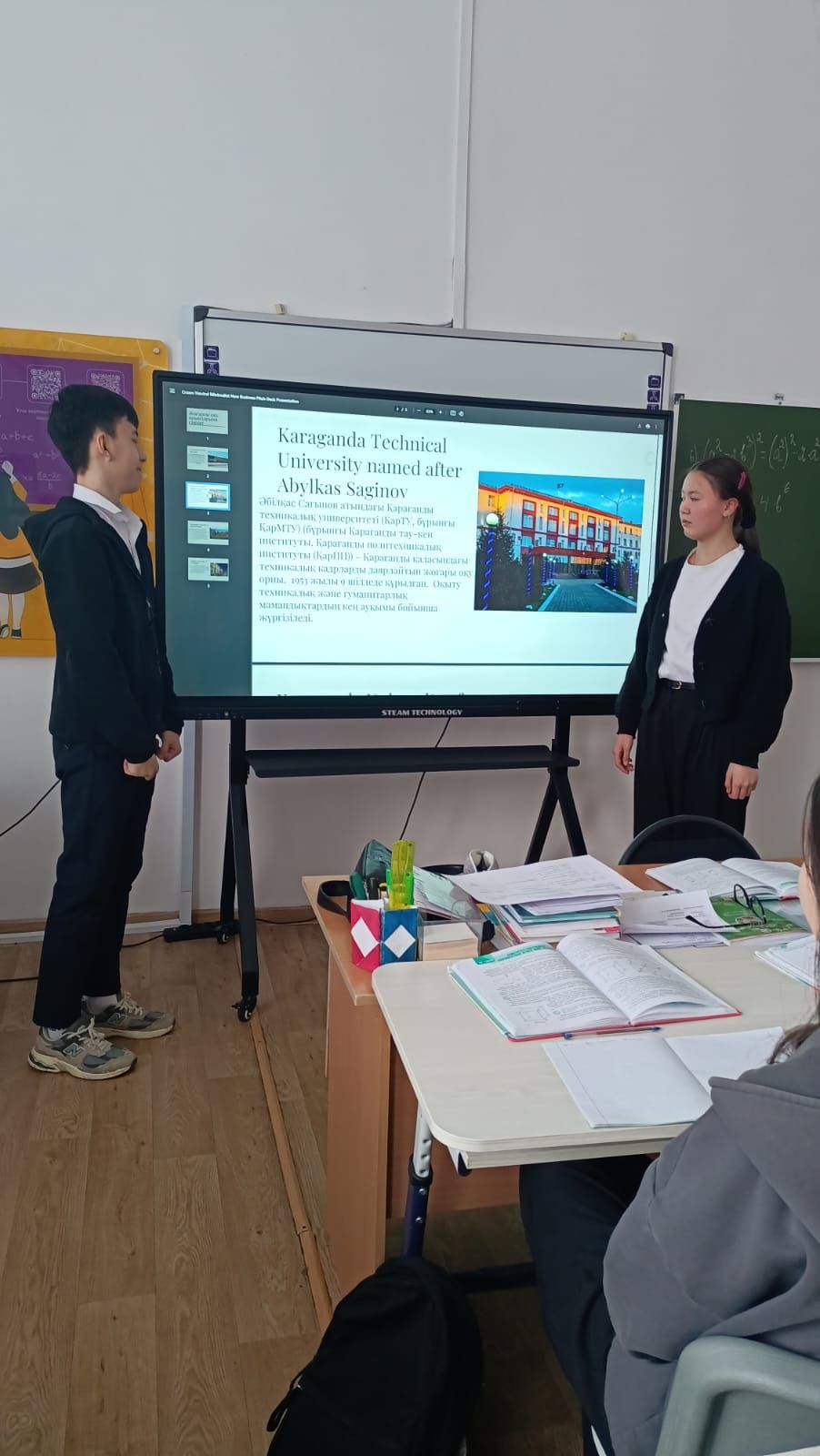 Оқу сауаттылығы апталығы барысында 21- қаңтар күні 10- 11 сынып оқушыларынан «Қазақ тілі – елдігімнің еңсесі» тақырыбында