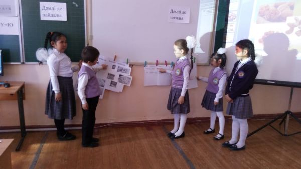 Бастауыш сынып бірлестігінің апталығында 18.04.2019 күні 1 «Ә»сынып оқушыларымен «Дәмді әрі пайдалы»тақырыбында дүниетану пәнінен ашық сабақ өтті.Мұғалімі Башаева…