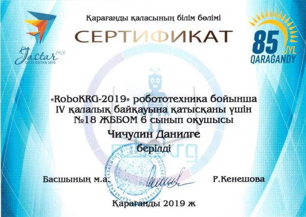 29-30 қараша күндер аралығында ІV қалалық «RoboKRG-2019» атты байқау өтті. Аталмыш байқауға мектебіміздің 7 «ә» сынып оқушылары Чичулин Данил ,Олжабай Жансерік&nb…