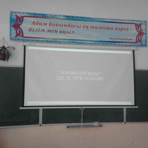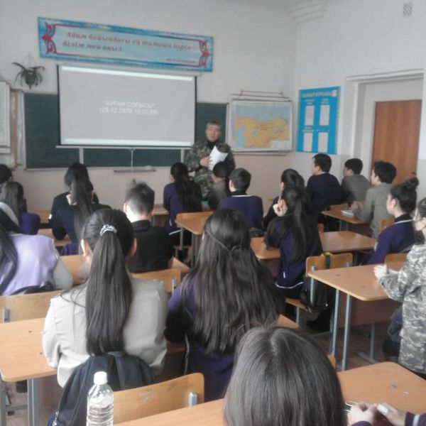 Кеңес әскерлерінің Ауған жерінен шыққанына 30 жыл толуына орай 9-11 сыныптарға «Ауған ақиқаты» тақырыбында АӘД пәнінің мұғалімі Қ.Т.Бегулин бейне фильм көрсетіп,көптеген мағұлымат берді.…