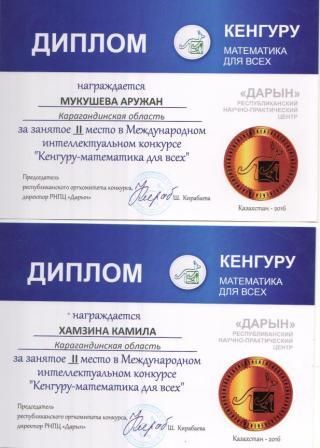 "Ғылымға қадам-2016" І қалалық ғылыми жобалар сайысында 7 сынып оқушысы Аманов Диас ІІ орынға ие болды. Жоба жетекшісі:Утемуратова Р.Ж. Құттықтаймыз!!!