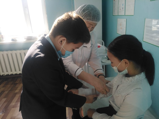 1 наурыз-Халықаралық азаматтық қорғаныс күні жоспары аясында «Тоңазужәне өсу жағдайында алғашқы көмек көрсету тәсілдері» атты тақырыбында мектеп медбикесі Ж.К.Есе…