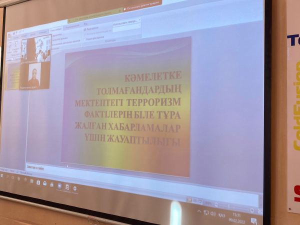 2022 жылдың 7-12 ақпан аралығында Құқықтық сауаттылық апталығы аясында «Кәмелетке толмағандардың мектептегі терроризм фактілерін біле тұра жалған хабарламалар үшін жауаптылығы» тақырыбын…