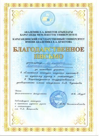 08.03.2017г в Карагандинском государственном университете имени академика Е.А Букетова прошел областной конкурс научных проектов по русскому языку и литературе. Ученица 11 "Ә" класса, Кожа…