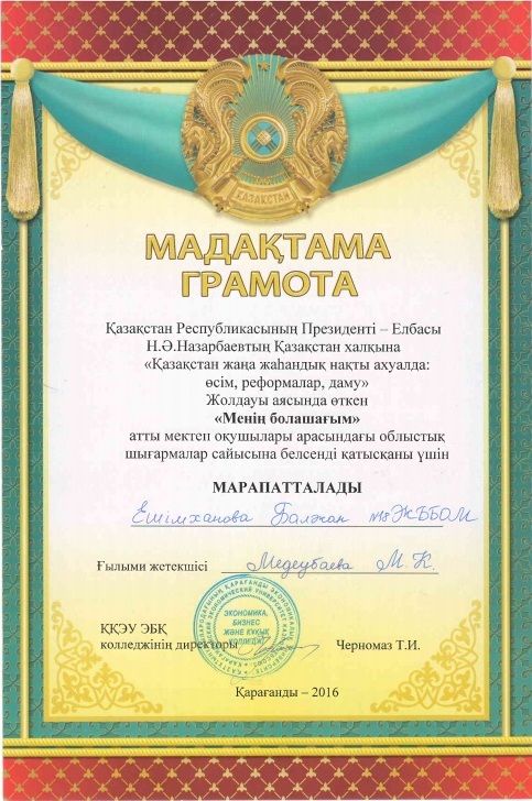 3-сынып окушысы Серикова Зарина Облыстық « Орталық Қазақстан» газетінің мектеп оқушылар арасында өткен «Тәуелсіздік-қазақтың БАҚ жұлдызы» атты шығармалар байқауына қаты…
