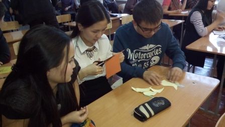 19.02.2016 г. школьный психолог Касенова Г.С. провела урок-тренинг с родителями и учащимися 11-х классов на тему «Бірге күштірек, сәттірек, бақыттырақ!» в целях психологической подготовк…