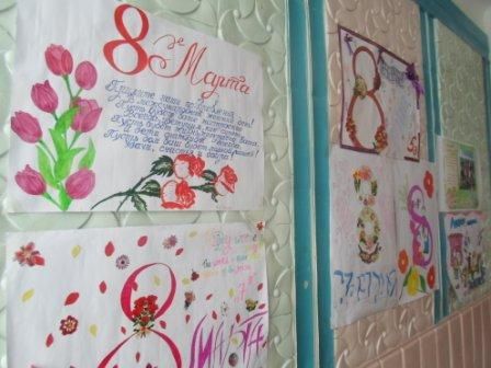 В фойе школы установлен стенд, посвященный Международному женскому дню 8 марта на тему «Ана-өмір шырығы»,а учащиеся 1-10 классов нарисовали настенные газеты.