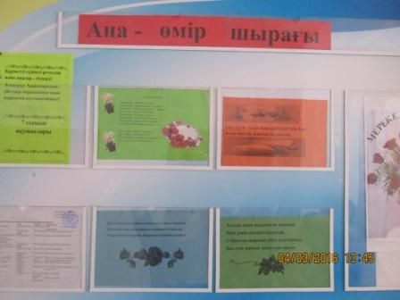 2 марта 2016 г. среди учащихся 1-11 классов были проведены классные часы на тему «Ана-гүл,ана-өмір шырағы!», посвященные 8 марта,