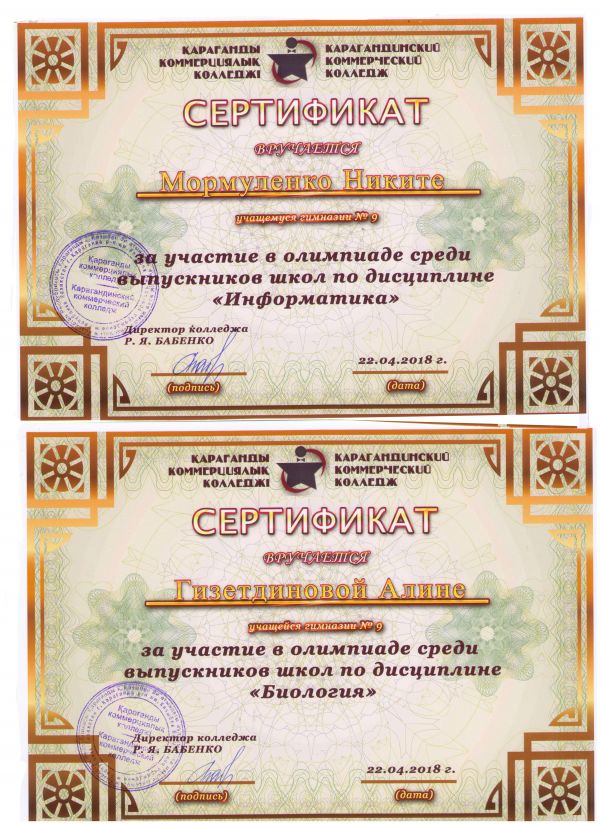 22 апреля в Карагандинском Коммерческом колледже прошел День открытых дверей и награждение победителей олимпиады среди учащихся 9 классов. Поздравляем наших победителей: