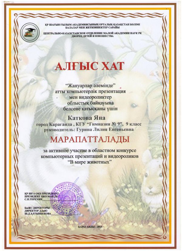 Республиканским учебно-методическим центром дополнительного образования Министерства образования и науки Республики Казахстан проведен республиканский заочный конкурс компьютерного творчества детей…