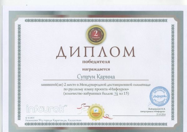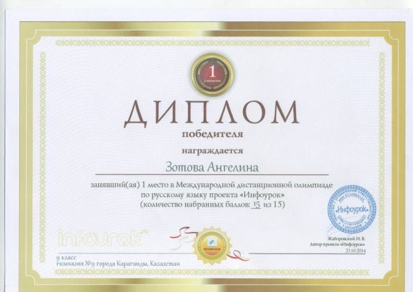 С 22 по 23 октября 2014 года прошла казахстанская интернет олимпиада для учителей начальных классов. В олимпиаде приняли участие все учителя начальных классов гимназии, о чем свидетельствуют получен…