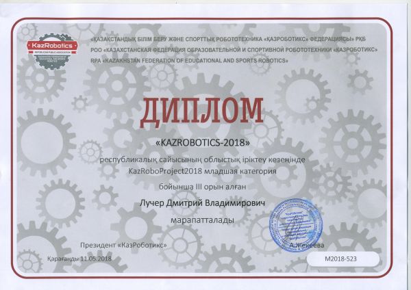 Поздравляем учащихся нашей гимназии Лучер Андрея и Лучер Дмитрия с 3 местом на соревнованиях по робототехнике "KazRobotics 2018" категории KazRoboProject 2018 младшая группа
