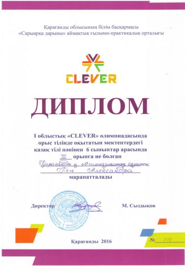26 октября 2016 года в районах и городах области проводилась Iобластная олимпиада «CLEVER» среди учащихся 4-6 классов. Основными целями и задачами Олимпиады являлись выявление интеллек…