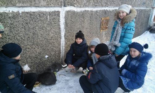 Қазақстан Республикасы Тәуелсіздігінің 25 жылдығына арналған «25 мейірімді істер» акциясына орай 7 В сынып оқушылары үйсіз жануарларға көмектесті: үйсіз мысықтарды тамақтандырды, т…