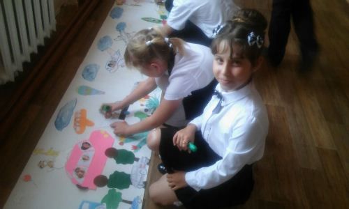 Балалар өз білімдерін тілдер аймағында көрсетті. Содан кейін оңтүстіктің суретшілері жолда жүру ережесі бойынша суреттер байқауында қабілеттерін көрсетті.