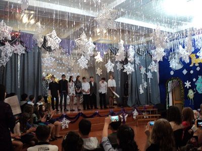 Ертегі батырлары: Перілер, Бармалаей, Царь морс, оқушыларға Аяз ата мен Ақшақарды табуға жол серік болды. Барлық жерде күлген дауыстар, ойындар, билер, Жаңа жылдық әндер айтылды.