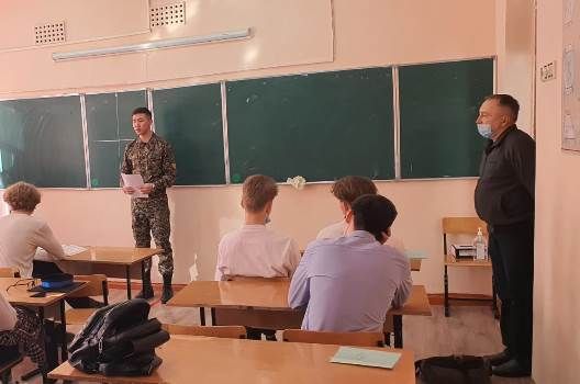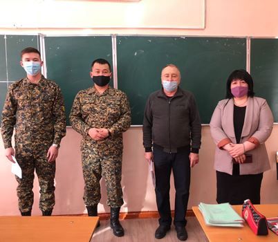 Провели встречу со старшеклассниками военнослужащие в/ч №5451 старший лейтенант Амиров Н. и сержант Тулькибай М. Была дана информация поступлению в Военную Академию Национальной гвардии РК.