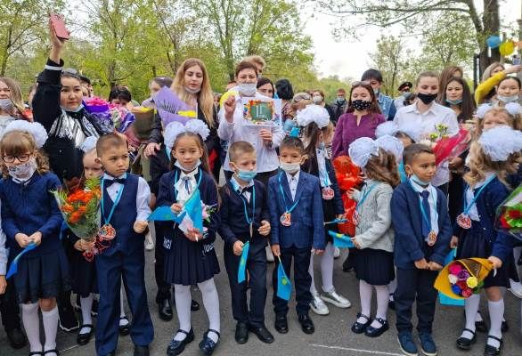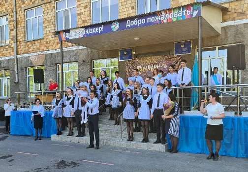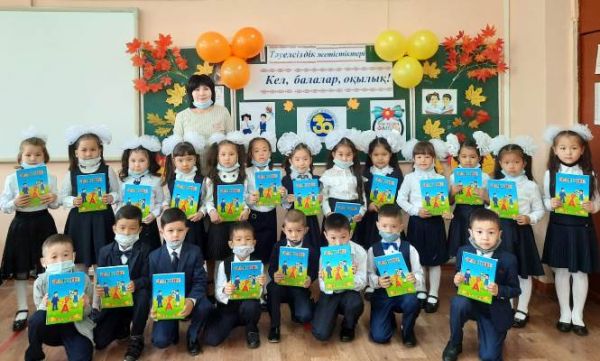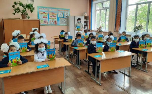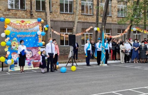 6 первых классов приветствовали на линейке администрация и классные руководители школы. 156 первоклассникам вручены Буквари и Әліппе.