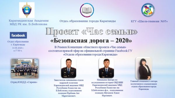 В рамках Концепции областного проекта «Час семьи» 14.08.2020 г. в 17.00 ч. состоится прямой эфир на официальной странице Facebook ГУ «Отдела образования города Караганды…