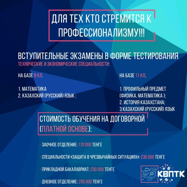 Информация для выпускников 9-11 классов Крарагандинский Высший Политехнический Колледж