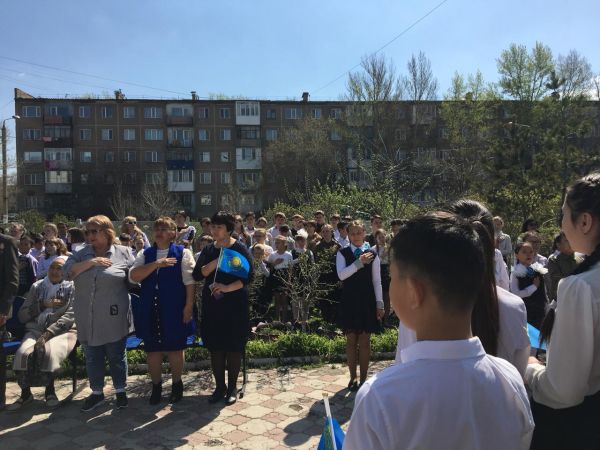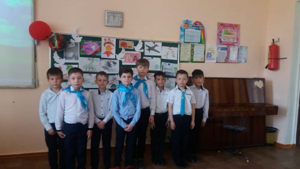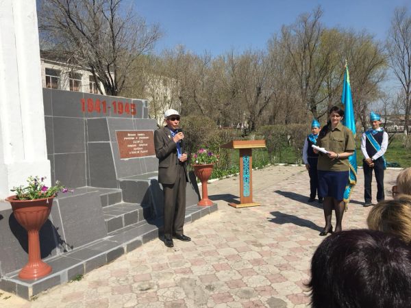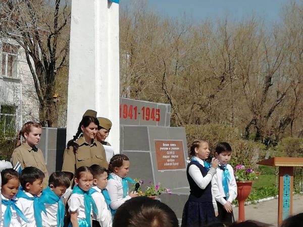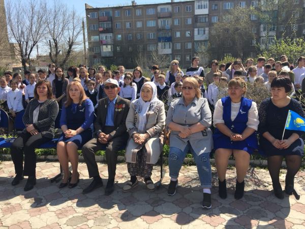 У обелиска во дворе школы прошел торжественный митинг, посвященный 9 мая –Дню Победы. На мероприятие были приглашены гости: труженики тыла Баймуханов С. с супругой Баймухановой Н., дочь участн…