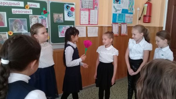 С целью - познакомить детей с праздником " Международный день девочек" в 3 " Б" и 4 " А" классах прошёл классный час. Ребята читали стихи, исполняли песни, приняли акти…