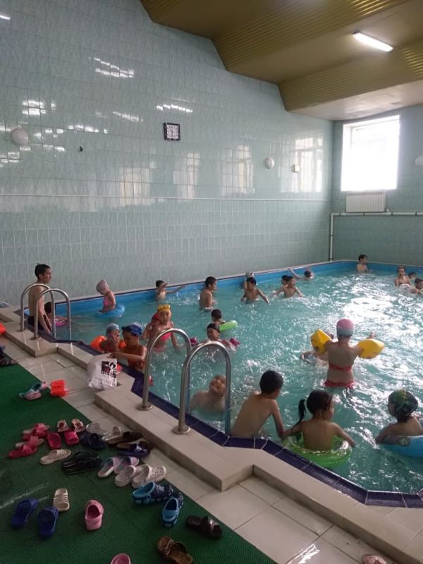 Күн тәртібі бойынша «Теңіз жұлдыздары» балалары бассейнге барды.Бассейнге бармас бұрын балалар су қауіпсіздігі туралы нұсқаулықтармен танысты.Суда шомылудың пайдасының көп екенін білді.