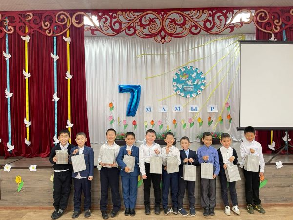2 "Ә" сыныбында "7-мамыр-Қазақстан Қарулы күштері күніне арналған сынып сағаты өтті. Сыныптын қыздары ұл балаларға мерекелік тілектер айтып, ән шырқады.