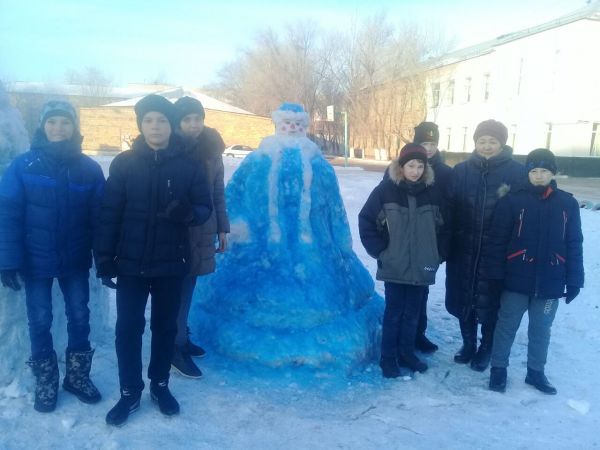 Учащиеся 6-7 класса слепили фигуру Снегурочки из снега в школьном дворе.Дети работали дружно! Им понравилось работать на свежем воздухе.