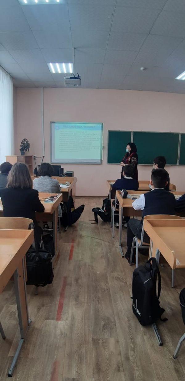 Наурыз айында 6-7 сыныптар арасында жоспар бойынша "Сыпайылық" тақырыбы бойынша мәліметтер беріліп сыпайы сөйлеу арқылы әдептілік сақтай отырып отбасында, мектепте тәртіпті болуға әңгіме ж…