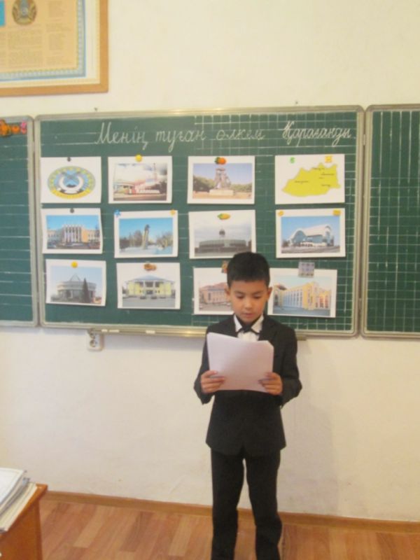 12.10. 2016ж 3 «Ә» сынып оқушыларымен «Менің туған өлкем Қарағанды» атты сынып сағаты өтті.Оқушылар өздерінің елін, жерін сүюге, байлығын қорғауға және өз е…