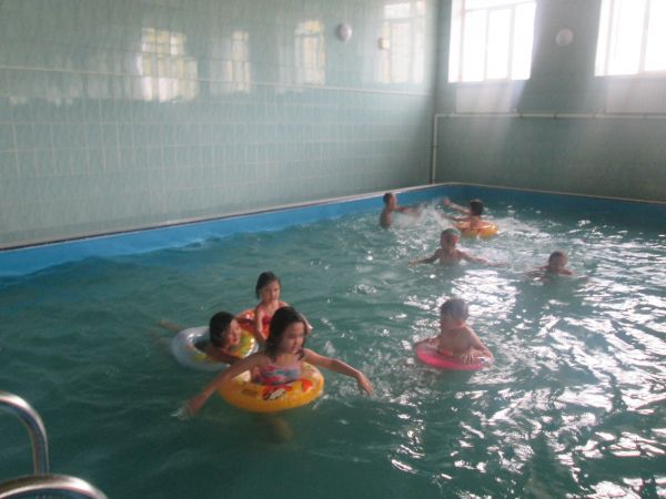После утренней зарядки, дети посетили бассейн при СОШ №77. Им было очень весело. Перед посещением в бассейн с детьми была проведена беседа о правилах поведения на воде. После поездки были игры на св…