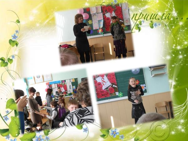 Учащиеся 1 «а» класса пели песни, читали стихи, участвовали в играх вместе со своими мамами.