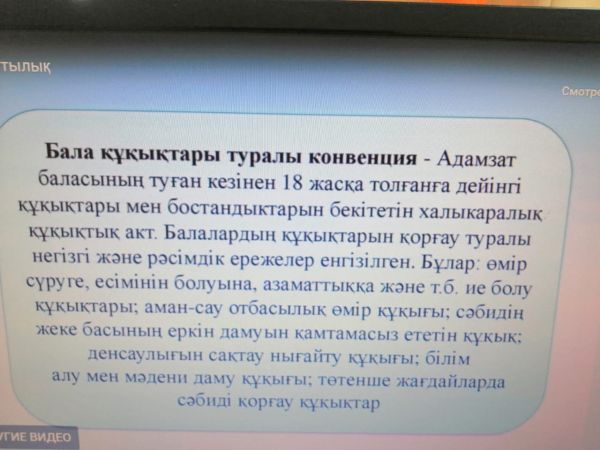 2ші «ә» сынып оқушылары «Құқықтық сауаттылық заман талабы» атты тәрбие сағатын талдап танысып өтті