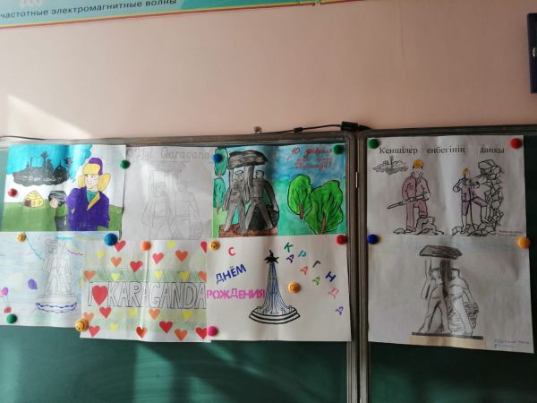 10.02.2021ж күні 2ші «ә» сынып оқушылары арасында «Әсем қала— Қарағанды» атты сурет көрмесін өткізу барысында қаланың көркем жерлерімен танысып өтті.