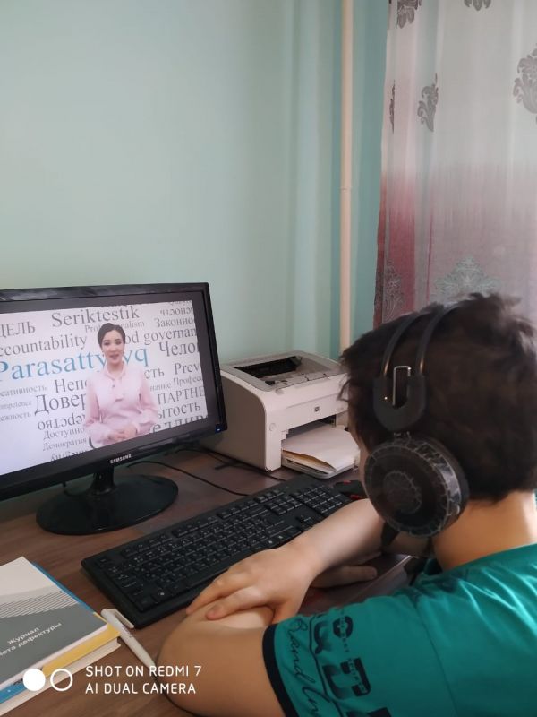 В рамках Часа добропорядочности с учащимися 6 - 8 классов проведены видео - уроки по теме: "Шәкәрім өсиеті- адалдық айнасы " на двух языках.