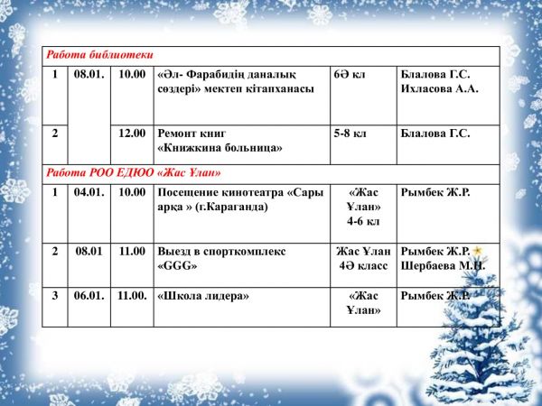 Для учащихся 1 "ә" и 4 "ә" классов прошло праздничное новогоднее мероприятие с участием Деда мороза и Снегурочки, а также сказочных персонажей. Активное участие…